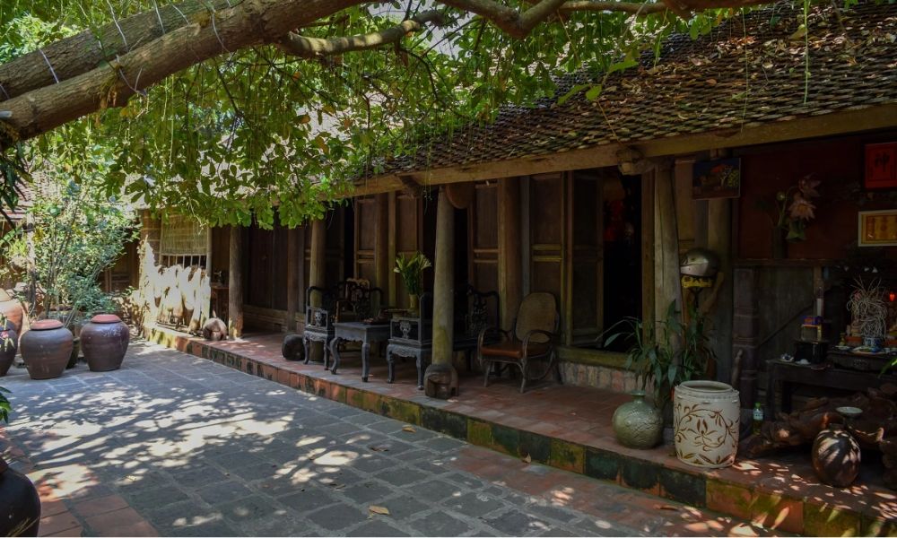 The village has nearly 1,000 old houses built more than 370 years ago. They are all built with traditional materials: laterite, bamboo, oak, terracotta bricks, tiles, etc. A traditional house of Duong Lam typically includes a gate, fence, yard, garden, main building, kitchen, and poultry barn. Some large houses also have wells, and even ponds. The old houses in Duong Lam often face the south and southeast, making them cool in summer and warm in winter.
