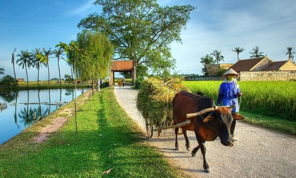 Another ideal time to explore Duong Lam is during the harvest season, typically in May and June. As the rice fields turn golden and farmers prepare for harvest, the village transforms into a picturesque countryside scene. Roads are lined with sun-dried straw, traditional carts move slowly through the fields, and the scent of freshly harvested rice fills the air.