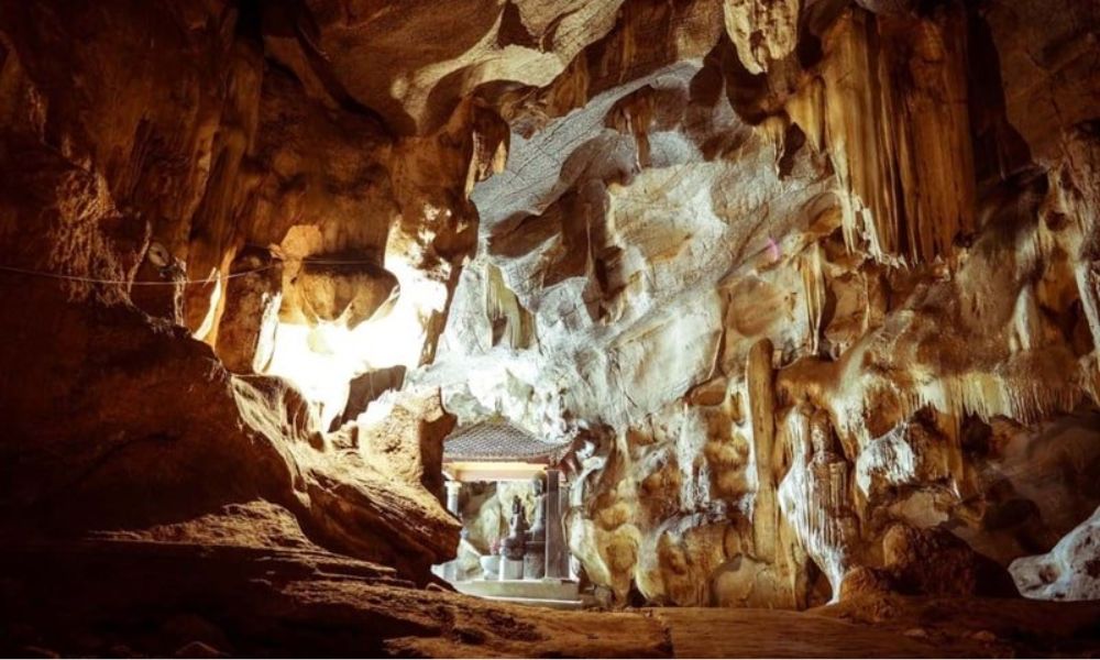 On the route from Ngo Dong Tam Coc River to Thai Vi Temple lies Thien Huong Cave. Roughly 15 meters above the ground, it is a dry, well-lit cave. The cave is 20 meters wide, 40 meters deep, and approximately 60 meters high.